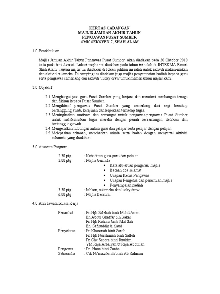 Contoh Kertas Kerja Majlis Makan Malam Kertas Kerja Majlis Jamuan Akhir Tahun Tujuan Kertas Kerja Ini Disediakan Adalah Untuk Memohon Ia Juga Merupakan Majlis Jamuan Perpisahan Tahunan Peringkat Jabatan Syariah Yang